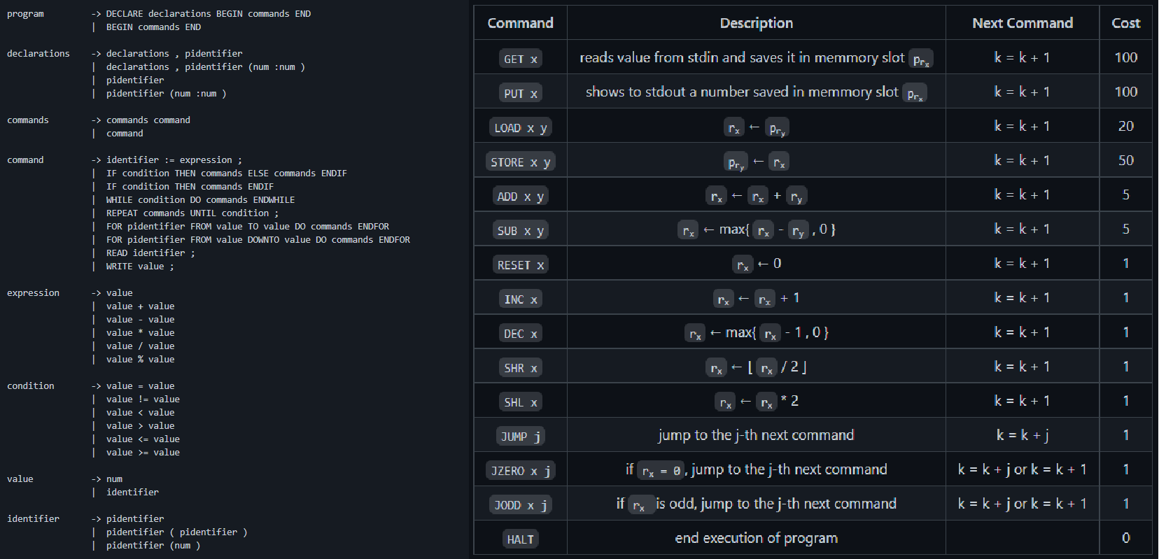 Kompilator prostego języka imperatywnego na język maszynowy.
