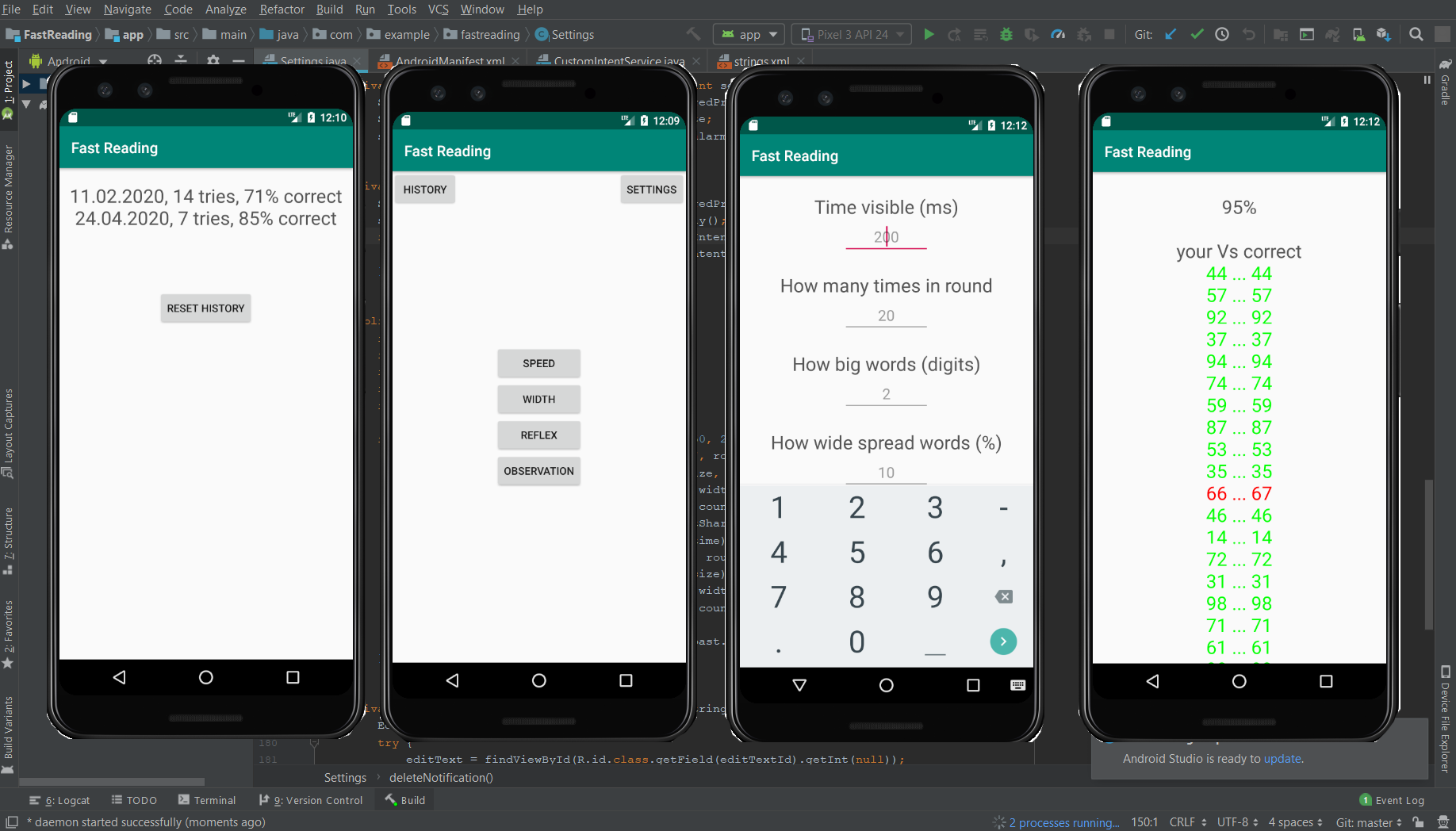 Aplikacja mobilna na Androida, mająca za zadanie poprawę zdolności szybkiego czytanie, poprzez różnorakie ćwiczenia, jak wyświetlanie liczb przez coraz mniejszy ułamek sekundy aby przyzwyczaić mózg do szybkiego rejestrowania danych, lub zwiększanie szerokości pola widzenia poprzez wyświetlanie liczb w różnych zakątkach ekranu.